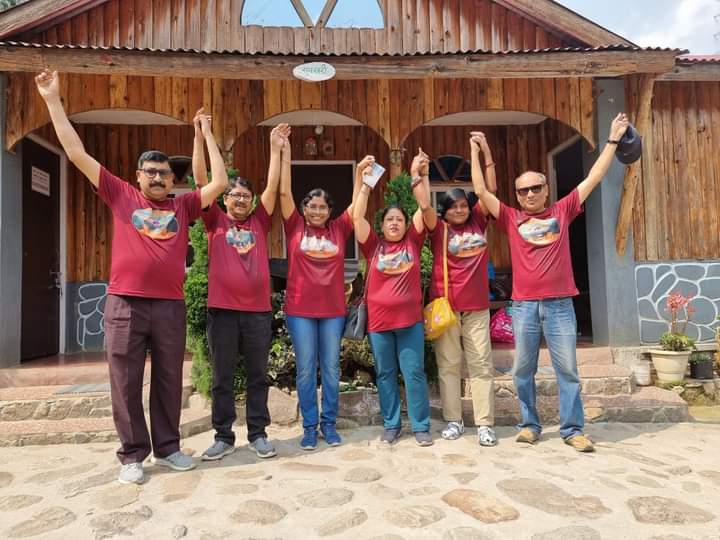 বাড়ীর পেছন দিকে রয়েছে রংভঙ্গ নদীতে নামার রাস্তা। গত কাল বিকেলে আর ওই রাস্তা দিয়ে যাইনি। সকালে গিয়ে বুঝলাম সঠিক ডিসিশন ছিল। পায়ে চলার পথ দিয়ে নদীর বুকে নেমে গেলাম। এখানে নদী বেশ সরু। বেশ বড় বড় পাথর এর ফাঁকা দিয়ে নদী বয়ে চলেছে তার আপন গতিতে। কিছুক্ষণ কাটিয়ে ফিরে এলাম। নিজেদের লাগেজ গুছিয়ে তৈরী হয়ে জল খাবার খেয়ে নিলাম। ছিল লুচি ও পাহাড়ি আলুরদম। আমাদের আট জনের গ্রুপ এর নাম Octave, সেটি লেখা টি শার্ট পড়ে নানান ভঙ্গিমায় বেশ কিছু ছবি তোলা হল। এর পরে সুনাখারী হোম স্টে এর তরফ থেকে খাদা (এক ধরণের উত্তরিও) পড়িয়ে আমাদের বিদায় জানানো হল, যা কিনা আমাদের কাছে ছিল অপ্রত্যাশিত । এই অপূর্ব সুন্দর আতিথেয়তা আমাদের মুগ্ধ করেছে।
