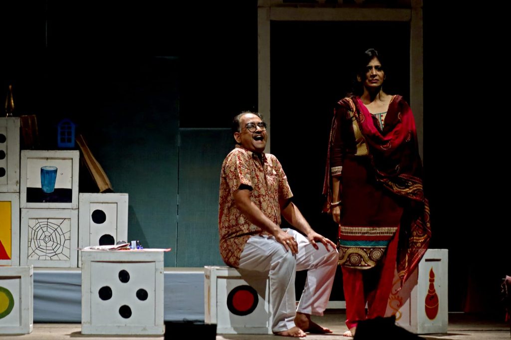 একজন মুখোশধারীকে এই চরিত্রে সফল ভাবেই ব‍্যবহার করেছেন নির্দেশক। জোনাল আলো ও ব‍্যঞ্জনাময় সাজেস্টিভ সেটের ভেতর দিয়ে (মঞ্চ ও আলো শান্তনু দাসকৃত) তিন নারীর তিনটি সংসার দেখানো হয়েছে। জীবন যে সত্যিই শুধু ছক্কা-পাঞ্জা-পুটের খেলা তা বোঝাতে লুডোর ছকের ব‍্যঞ্জনাময় মঞ্চায়ণ বেশ ভালো লাগে। অভিনয়ে প্রত‍্যেকেই ছিলেন সাবলীল। তাঁদের টিমওয়ার্ক যেন এক সুরে বাঁধা ছিল। ভালো লাগে খেলনাওয়ালার পাসিংটি, এবং চুরি করা টেলিভিশন সেটের পর্দায় ভেসে ওঠা কল্পণার মুখ। কল্পনা যেন না থেকেও আছে এই দৃশ্যে !!