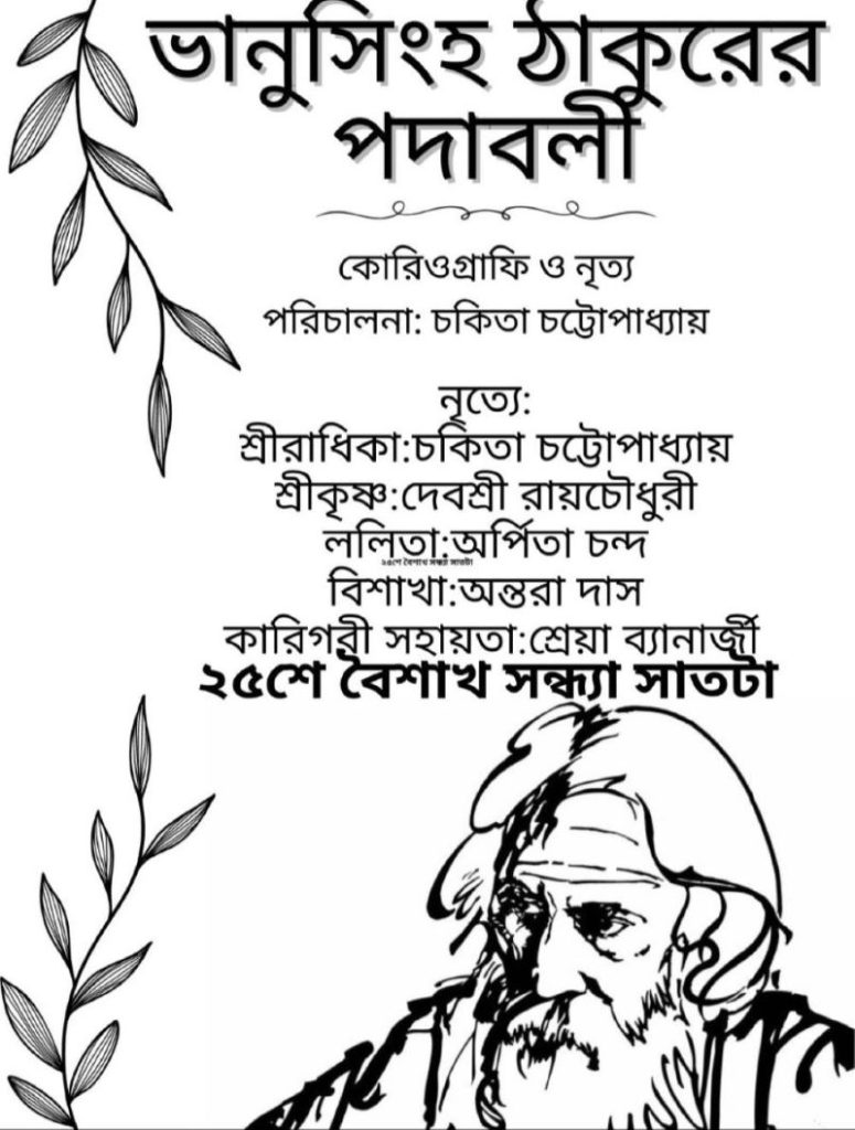 ভানুসিংঘ ঠাকুরের পদাবলী অনুষ্ঠিত হবে ২৫শে বৈশাখ ( 8th May ), সল্টলেক রীতায়ান এ সন্ধ্যে ৭ টায়
