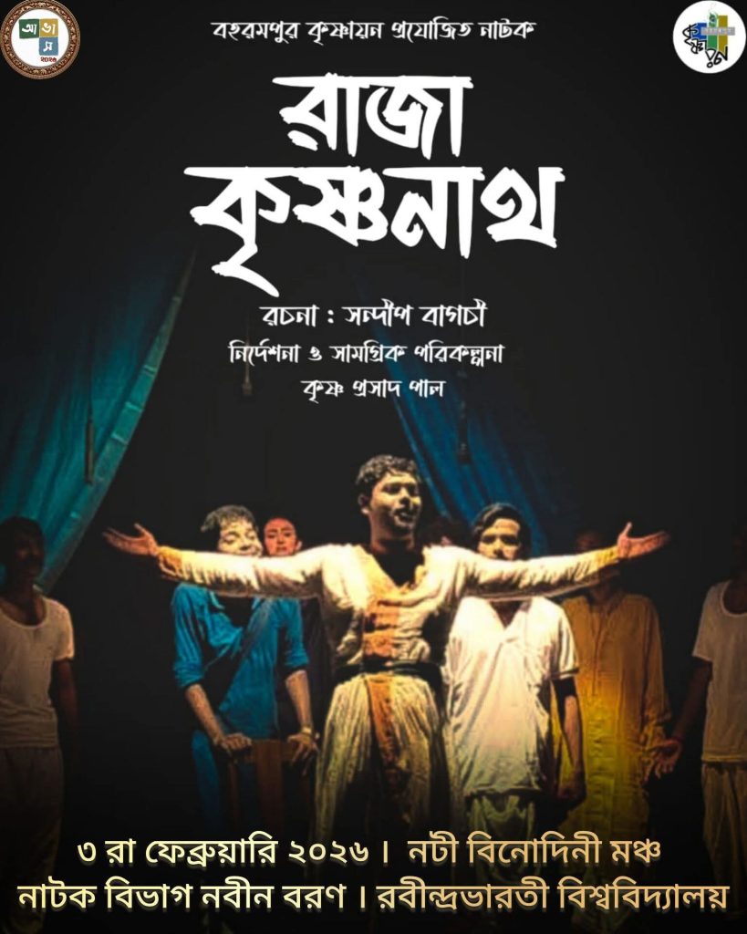 রবীন্দ্রভারতী বিশ্ববিদ্যালয়ের ( নাটক বিভাগ ) নবীনবরণ “আ ভা স” সম্প্রতি অনুষ্ঠিত হলো বি টি রোড ক্যাম্পাসের নটী বিনোদিনী মঞ্চে। প্রদীপ প্রজ্জ্বলনের মধ্যে দিয়ে অনুষ্ঠানের শুভ সূচনা করলেন বিভাগীয় অধ্যাপক ডঃ সিদ্ধার্থ চক্রবর্তী। মঞ্চস্থ হলো বহরমপুর কৃষ্ণায়ন প্রযোজিত ছাত্রছাত্রী অভিনীত নজরকাড়া নাটক “ রাজা কৃষ্ণনাথ”। ১৮২২ সালে জন্ম নেওয়া কাশিম বাজারের স্বল্পায়ূ রাজা কৃষ্ণনাথকে কেন্দ্র করে নাটক বোধহয়
