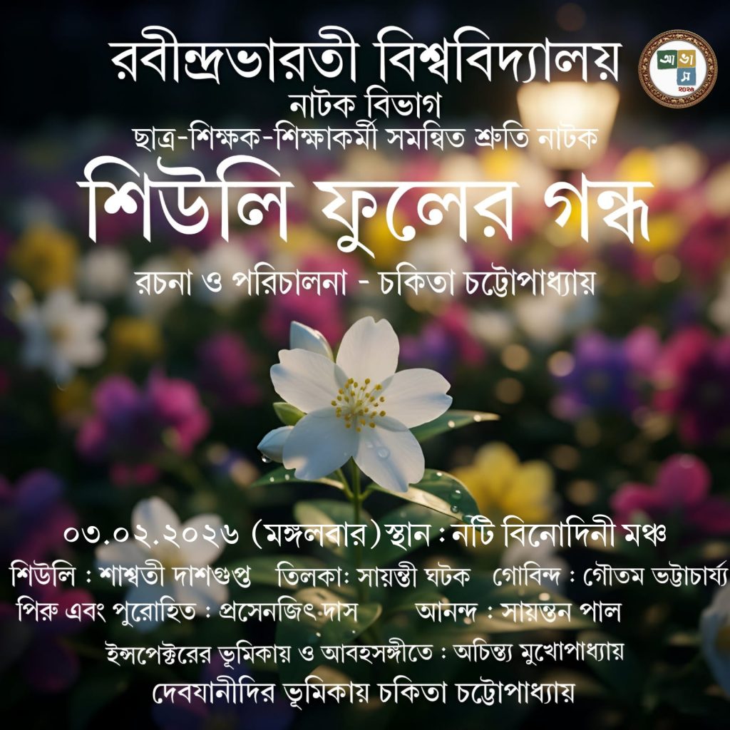 এরপরই ছিল অধ্যাপিকা চকিতা চট্টোপাধ্যায় রচিত ও পরিচালিত ছাত্র-শিক্ষক-শিক্ষাকর্মী সমন্বিত শ্রুতিনাটক “শিউলি ফুলের গন্ধ”। কন্যাসন্তানকে পড়াশোনা শেখানোতে আজও মানুষের অনাগ্রহ। সমস্ত প্রতিবন্ধকতা অতিক্রম করে কন্যাসন্তানের সেই লড়াই এ জেতাকে কেন্দ্র করেই এই নাটক। বিভিন্ন চরিত্রে সাবলীল অভিনয় করেছেন শাশ্বতী দাশগুপ্ত , সায়ন্তী ঘটক, সায়ন্তন পাল, গৌতম ভট্টাচার্য্য, প্রসেনজিৎ দাস, অচিন্ত্য মুখার্জী ও চকিতা চট্টোপাধ্যায়। আবহের ( অচিন্ত্য মুখার্জী ) সুচারু ব্যবহার নাটকটিতে আলাদা মাত্রা যোগ করেছে।